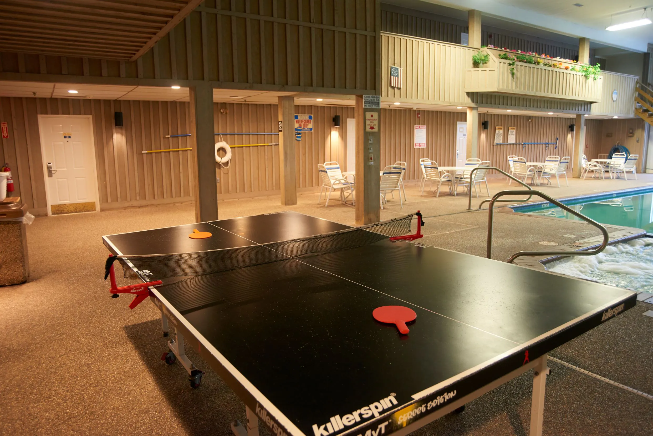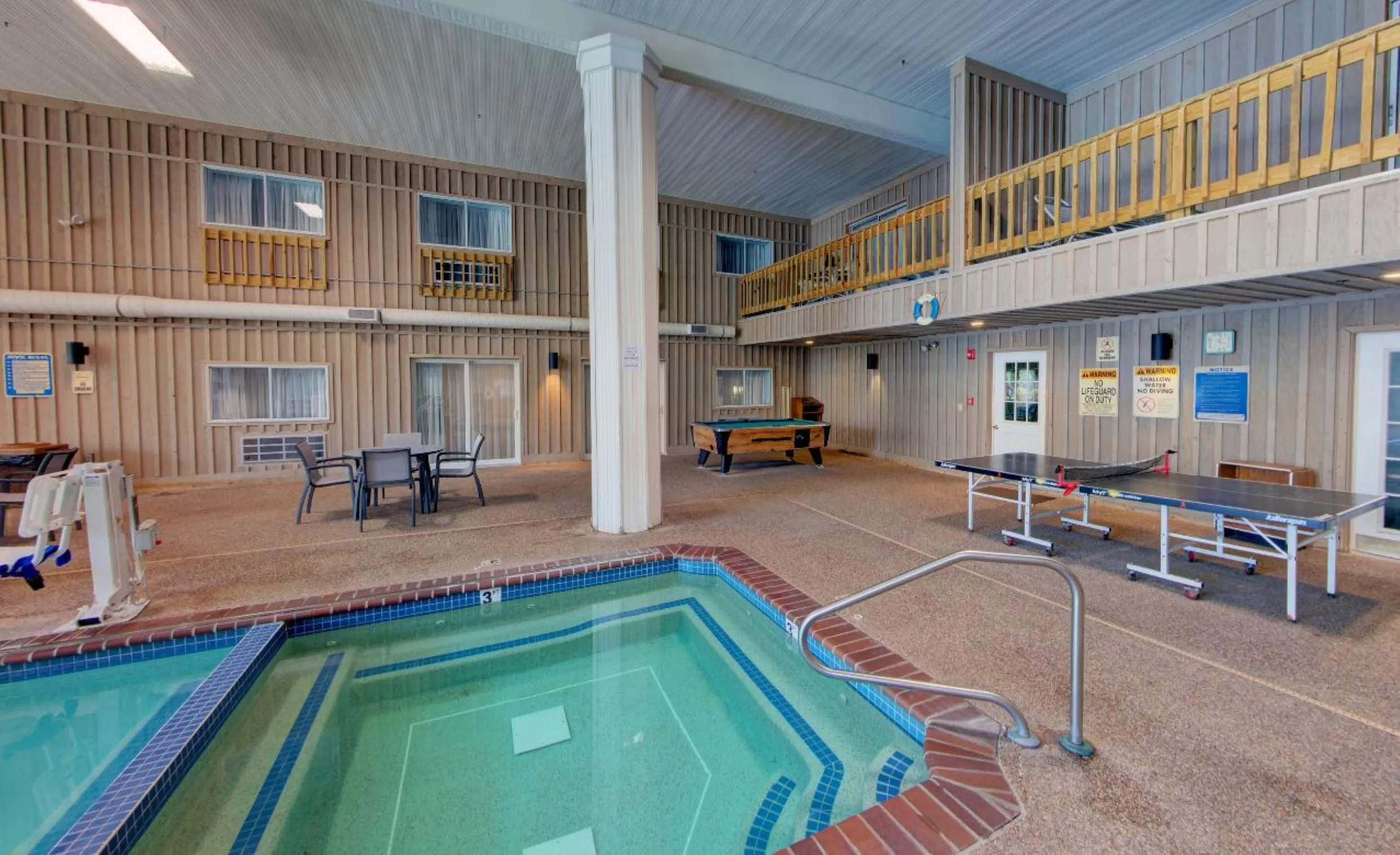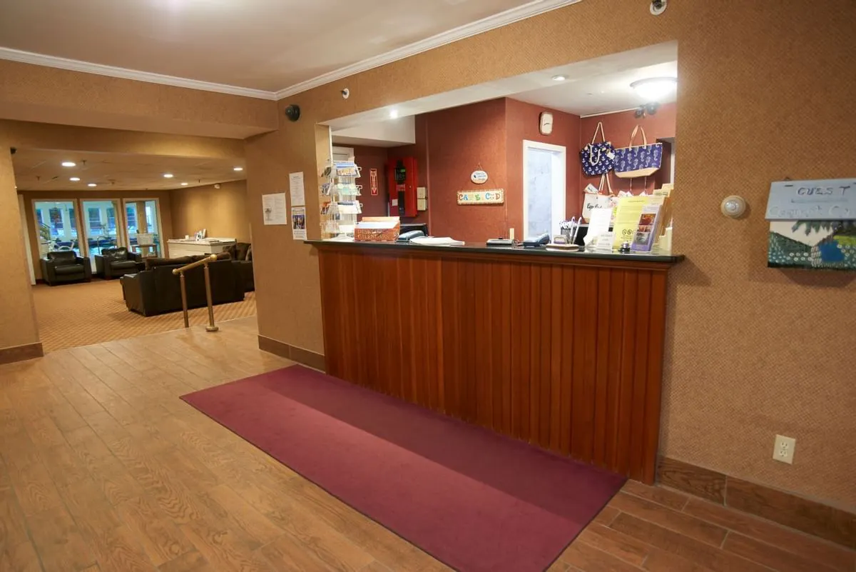 Standard Rooms - 2 Double Our cozy Standard Rooms include 2 Double beds, a desk with a chair, a single sofa chair, a cable TV, a microwave, a mini fridge and more. These rooms are pet friendly.*Standard Rooms - 1 King Our cozy Standard Rooms include 1 King bed, a desk with a chair, a single sofa chair, a cable TV, a microwave, a mini fridge and more. These rooms are pet friendly.*Efficiency Room with 2 Double Beds Exterior kitchen room, 2 separate rooms, living room with pull-out sofa bed, Flat-screen TV (cable), telephone, table with chair, kitchen with stove & full-size fridge. No pots, pans, dishes or cutlery. Bedroom with 2 double beds, air conditioning, Flat-screen TV(cable) and bathroom with a slopped ceiling. Note: Some of the rooms may not have a seperate room and a sofa bed. (Subject to availability). These rooms are pet friendly.Efficiency Room with 1 King Bed Exterior kitchen room,1 King bed, a work desk with a chair, Flat-screen TV (cable), telephone, table with chair, kitchen with stove & full-size fridge. No pots, pans, dishes or cutlery. These rooms are pet friendly.*One Room Suite with 2 Queen Beds This comfortable One-Bedroom Suite offers two Queen-size beds in an oversized room alongside a kitchenette with a microwave and a small fridge (no stove), countertop with stools, desk and chair, single sofa chair, a cable TV, and more.One Room Suite with 1 King Bed This comfortable One-Bedroom Suite offers one King-size bed in an oversized room alongside a kitchenette with a microwave and a small fridge (no stove), a table and chairs, a cable TV and more.Accessible Suite with 2 Queen Beds Accessible Suite offers two Queen-size beds in an oversized room alongside a kitchenette with a microwave and a small fridge (no stove), countertop with stools, desk and chair, single sofa chair, a cable TV, and more.Accessible Suite with 1 King Bed Accessible Suite offers 1 king size beds in an oversized room alongside a kitchenette with a microwave and a small fridge (no stove), countertop with stools, desk and chair, single sofa chair, a cable TV, and more.Deluxe Suite with 2 Queen Beds This spacious two-room Deluxe Suite has a bedroom with two Queen-size beds, a telephone, iron and ironing board, and a cable TV. The separate living room features a sitting area, a pull-out sofa, small coffee table, a large cable TV, desk and chair, a kitchenette with countertop with stools, a microwave and small fridge (no stove) and more.Deluxe Suite with 1 King Bed This spacious two-room Deluxe Suite has a bedroom with one King-size bed, a telephone, iron and ironing board, and a cable TV. The separate living room features a pull-out sofa, small coffee table, a large cable TV, desk and chair, a kitchenette with countertop with stools, a microwave and small fridge (no stove) and more.Poolside Deluxe Suite with 1 King Bed This spacious two-room Poolside King Suite has a bedroom with one King-size bed, a telephone, iron and ironing board, and a cable TV. The separate living room features a pull-out sofa, small coffee table, a large cable TV, desk and chair, a kitchenette with countertop with stools, a microwave and small fridge (no stove) and more.Poolside Deluxe Suite with 2 Queen This spacious two-room Poolside Deluxe Suite has a bedroom with two queen beds, a telephone, iron and ironing board, and a cable TV. The separate living room features a pull-out sofa, small coffee table, a large cable TV, desk and chair, a kitchenette with countertop with stools, a microwave and small fridge (no stove) and more.Poolside Accessible Suite - 2 Queen Poolside Accessible Suite offers 2 Queen-size beds in an oversized room alongside a kitchenette with a microwave and a small fridge (no stove), countertop with stools, desk and chair, single sofa chair, a cable TV, and more.Apartment with Full Kitchen Apartment Suite offers one King-size bedroom, a telephone, iron and ironing board, and a cable TV. The separate living room features a sitting area, a pull-out sofa bed, a large cable TV, table and chairs, a full size kitchen with a microwave, fridge and more. No pots, pans, dishes or cutlery.Jetted Tub Suite with 1 King Bed Our charming and oversized Jetted Tub Suites include one king bed with an end of bed bench, a private balcony overlooking the indoor pool, a cable TV, a table and chairs, a kitchenette with a microwave and small fridge (no stove), and a private bathroom. A separate room features a private Jetted Tub and another cable TV.