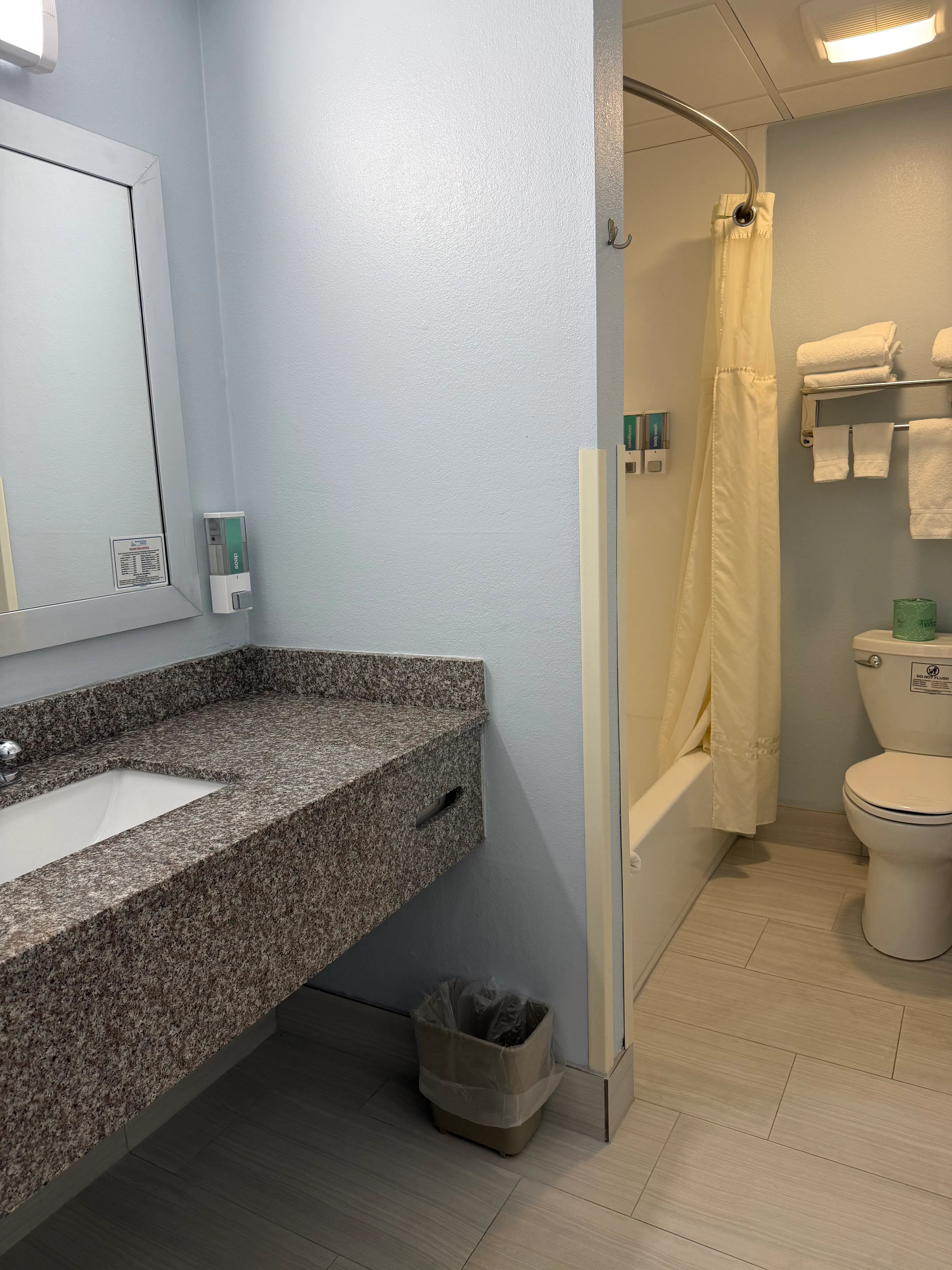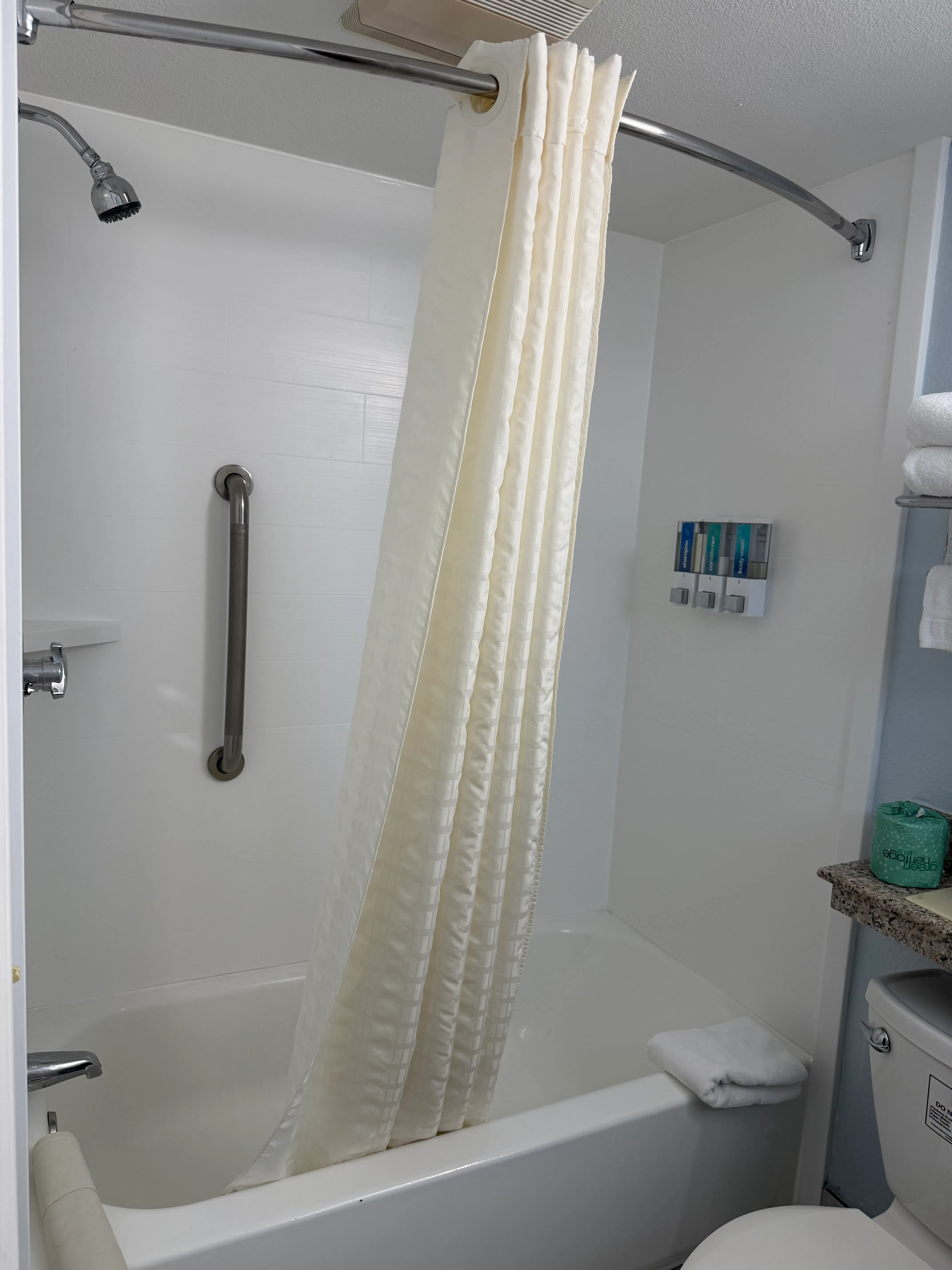 Standard Rooms - 2 Double Our cozy Standard Rooms include 2 Double beds, a desk with a chair, a single sofa chair, a cable TV, a microwave, a mini fridge and more. These rooms are pet friendly.*Standard Rooms - 1 King Our cozy Standard Rooms include 1 King bed, a desk with a chair, a single sofa chair, a cable TV, a microwave, a mini fridge and more. These rooms are pet friendly.*Efficiency Room with 2 Double Beds Efficiency Room with 2 Double BedsExterior kitchen room, 2 separate rooms, living room with pull-out sofa bed, Flat-screen TV (cable), telephone, table with chair, kitchen with stove & full-size fridge. No pots, pans, dishes or cutlery. Bedroom with 2 double beds, air conditioning, Flat-screen TV(cable) and bathroom with a slopped ceiling. Note: Some of the rooms may not have a seperate room and a sofa bed. (Subject to availability). These rooms are pet friendly.Efficiency Room with 1 King Bed Exterior kitchen room,1 King bed, a work desk with a chair, Flat-screen TV (cable), telephone, table with chair, kitchen with stove & full-size fridge. No pots, pans, dishes or cutlery. These rooms are pet friendly.*One Room Suite with 2 Queen Beds This comfortable One-Bedroom Suite offers two Queen-size beds in an oversized room alongside a kitchenette with a microwave and a small fridge (no stove), countertop with stools, desk and chair, single sofa chair, a cable TV, and more.One Room Suite with 1 King Bed This comfortable One-Bedroom Suite offers one King-size bed in an oversized room alongside a kitchenette with a microwave and a small fridge (no stove), a table and chairs, a cable TV and more.Accessible Suite with 2 Queen Beds Accessible Suite offers two Queen-size beds in an oversized room alongside a kitchenette with a microwave and a small fridge (no stove), countertop with stools, desk and chair, single sofa chair, a cable TV, and more.Accessible Suite with 1 King Bed Accessible Suite offers 1 king size beds in an oversized room alongside a kitchenette with a microwave and a small fridge (no stove), countertop with stools, desk and chair, single sofa chair, a cable TV, and more.Deluxe Suite with 2 Queen Beds Deluxe Suite with 2 Queen BedsThis spacious two-room Deluxe Suite has a bedroom with two Queen-size beds, a telephone, iron and ironing board, and a cable TV. The separate living room features a sitting area, a pull-out sofa, small coffee table, a large cable TV, desk and chair, a kitchenette with countertop with stools, a microwave and small fridge (no stove) and more.Deluxe Suite with 1 King Bed This spacious two-room Deluxe Suite has a bedroom with one King-size bed, a telephone, iron and ironing board, and a cable TV. The separate living room features a pull-out sofa, small coffee table, a large cable TV, desk and chair, a kitchenette with countertop with stools, a microwave and small fridge (no stove) and more.Poolside Deluxe Suite with 1 King Bed This spacious two-room Poolside King Suite has a bedroom with one King-size bed, a telephone, iron and ironing board, and a cable TV. The separate living room features a pull-out sofa, small coffee table, a large cable TV, desk and chair, a kitchenette with countertop with stools, a microwave and small fridge (no stove) and more.Poolside Deluxe Suite with 2 Queen This spacious two-room Poolside Deluxe Suite has a bedroom with two queen beds, a telephone, iron and ironing board, and a cable TV. The separate living room features a pull-out sofa, small coffee table, a large cable TV, desk and chair, a kitchenette with countertop with stools, a microwave and small fridge (no stove) and more.Poolside Accessible Suite - 2 Queen Poolside Accessible Suite offers 2 Queen-size beds in an oversized room alongside a kitchenette with a microwave and a small fridge (no stove), countertop with stools, desk and chair, single sofa chair, a cable TV, and more.Apartment with Full Kitchen Apartment with Full KitchenApartment Suite offers one King-size bedroom, a telephone, iron and ironing board, and a cable TV. The separate living room features a sitting area, a pull-out sofa bed, a large cable TV, table and chairs, a full size kitchen with a microwave, fridge and more. No pots, pans, dishes or cutlery.Jetted Tub Suite with 1 King Bed Jetted Tub Suite with 1 King BedOur charming and oversized Jetted Tub Suites include one king bed with an end of bed bench, a private balcony overlooking the indoor pool, a cable TV, a table and chairs, a kitchenette with a microwave and small fridge (no stove), and a private bathroom. A separate room features a private Jetted Tub and another cable TV.
