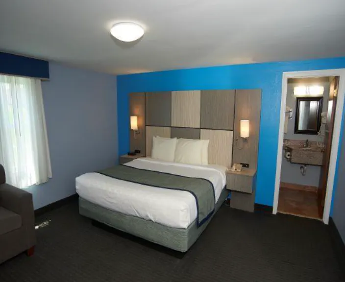 Our cozy Standard Rooms include 1 King bed, a desk with a chair, a single sofa chair, a cable TV, a microwave, a mini fridge and more. These rooms are pet friendly.*
